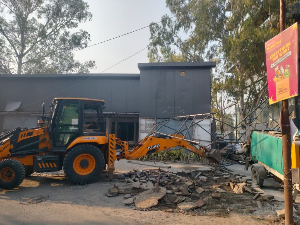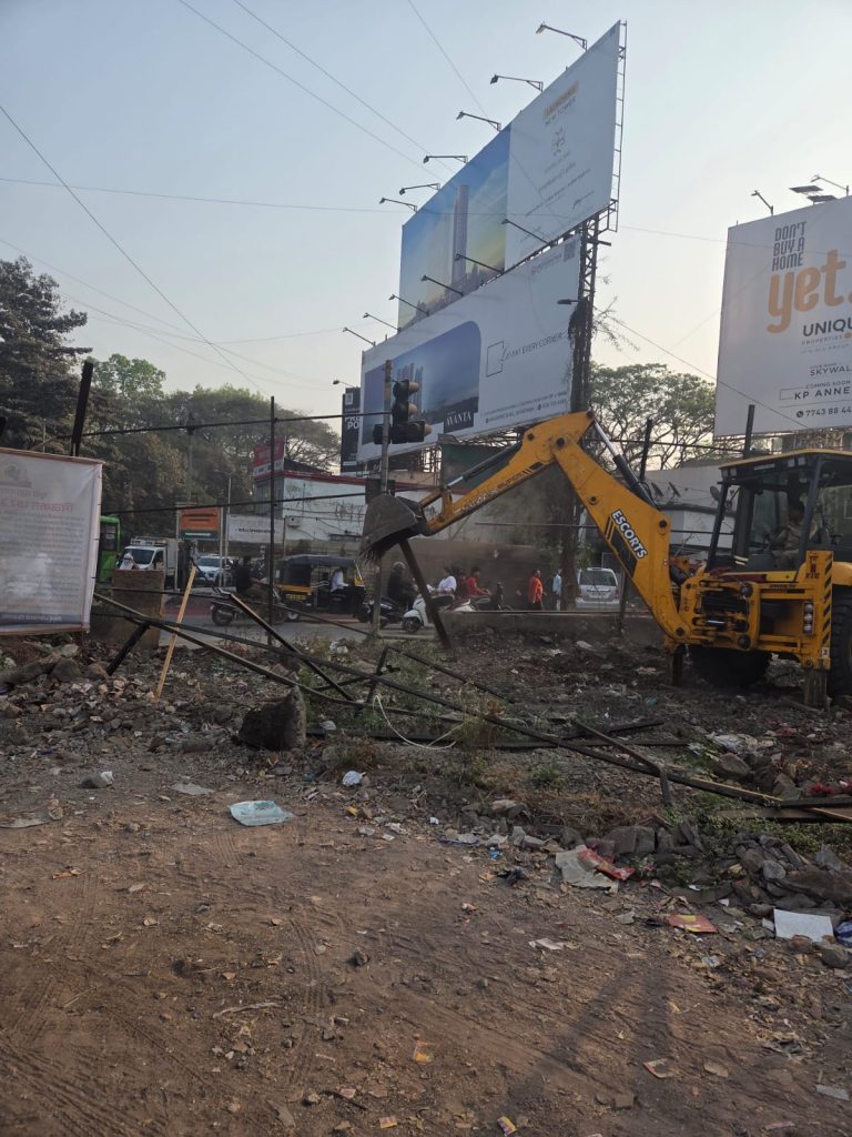 या कारवाईदरम्यान जेसीबीच्या सहाय्याने अनधिकृत पत्र्याच्या शेड, कुंपण व जाहिरात फलक जमीनदोस्त करण्यात आले. परिसरात मोठ्या प्रमाणावर पोलीस बंदोबस्त ठेवण्यात आला होता.