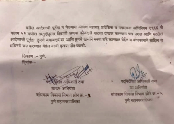 या पार्श्वभूमीवर ANTI CORRUPTION SQUAD चे अध्यक्ष वाजिद एस. खान यांनी PMC ला लेखी तक्रार देत या अनधिकृत इमारतीवर तत्काळ कारवाई करून बांधकाम पूर्ण होण्यापूर्वीच पाडून टाकण्याची मागणी केली आहे.